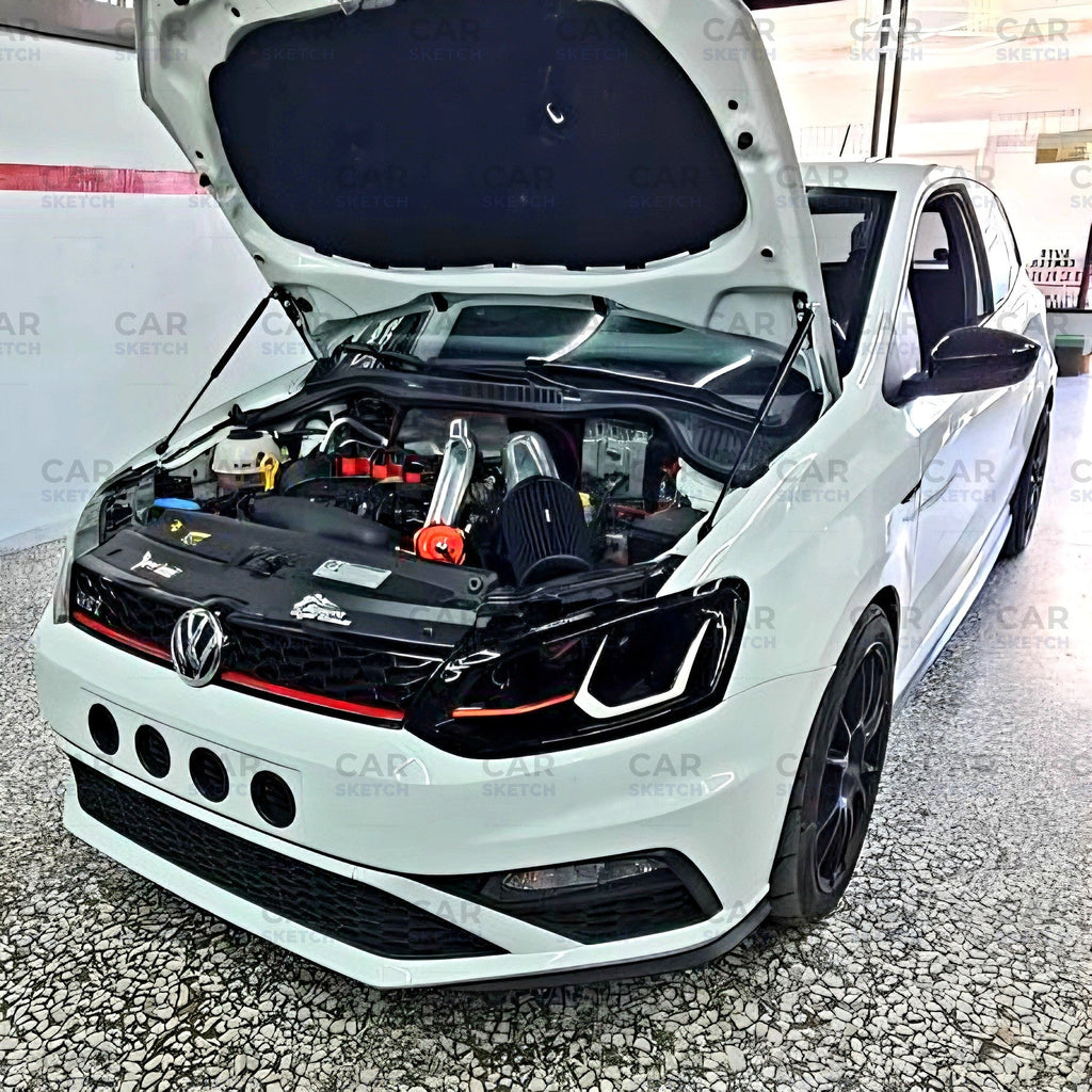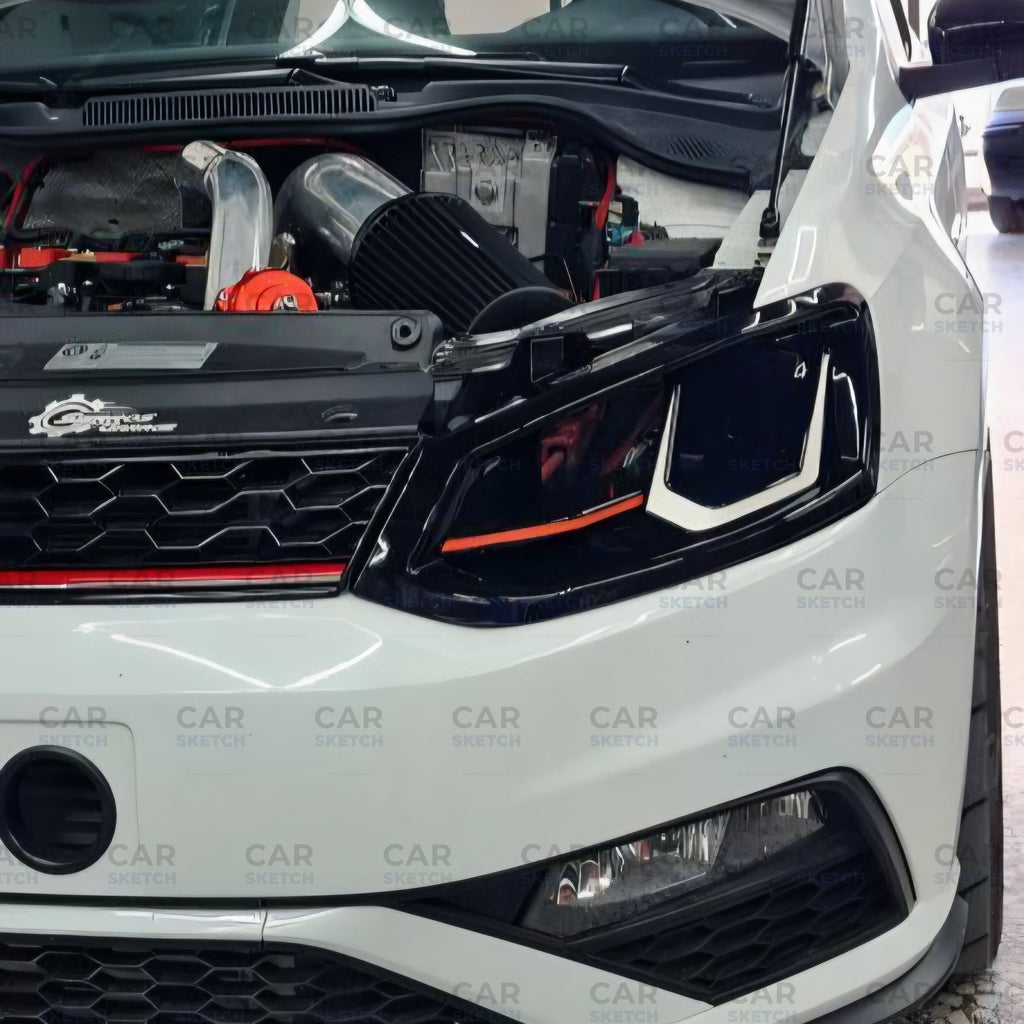 The red and white accents are purely visual styling lines, not lights — giving your Polo a motorsport touch without added wiring or installation complexity.